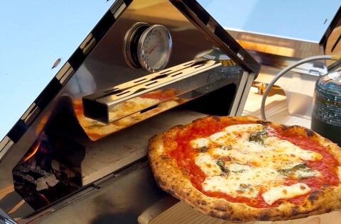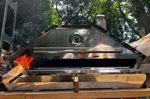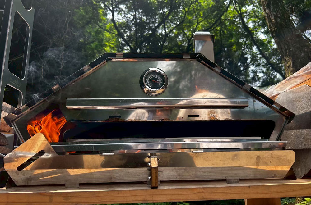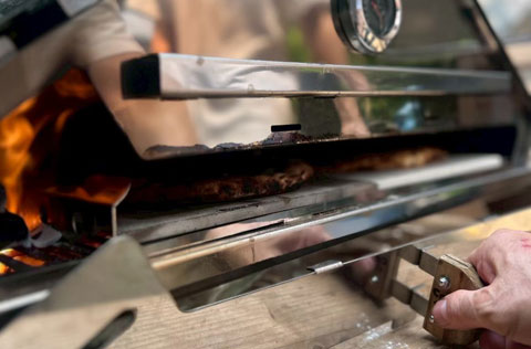 ガスバーナーと薪の両方に対応。バーナーで庫内を素早く高温にし、薪を加えることで、薪ならではの香ばしい風味がピッツァにプラスされます。スピーディーでありながら、深い味わいを引き出せる設計です。